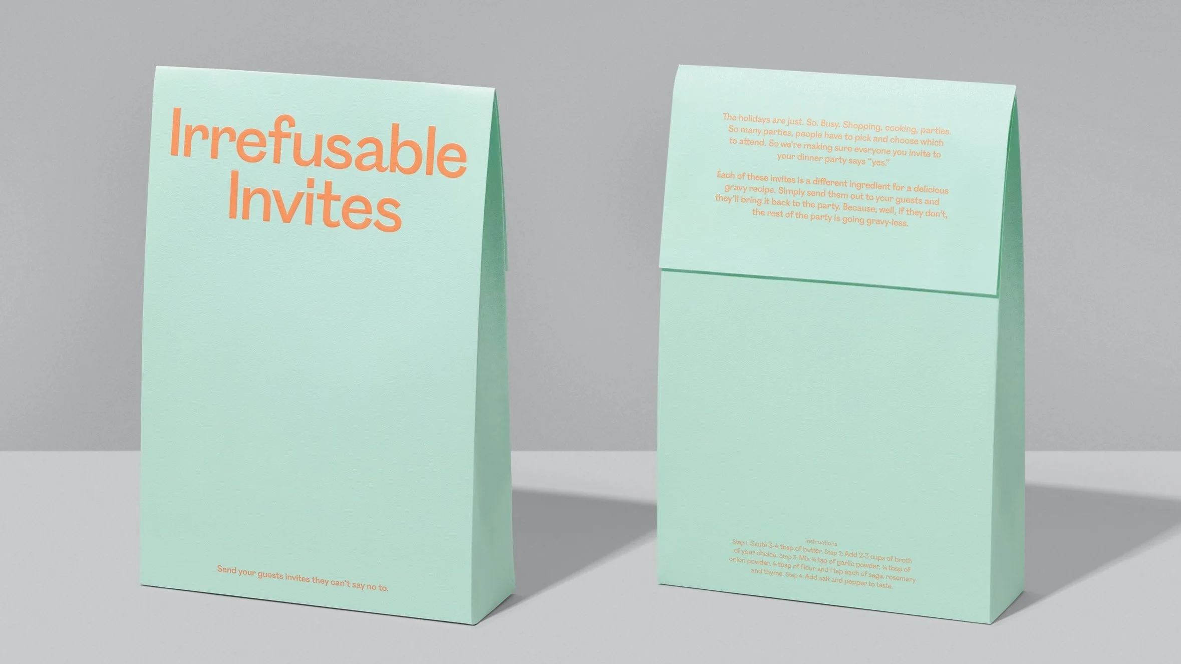 So we took the guess work out of guest lists with invitations that each had a different ingredient to a delicious gravy inside. Giving guests no choice but to RSVP “yes” unless they wanted everyone to go gravy-less.